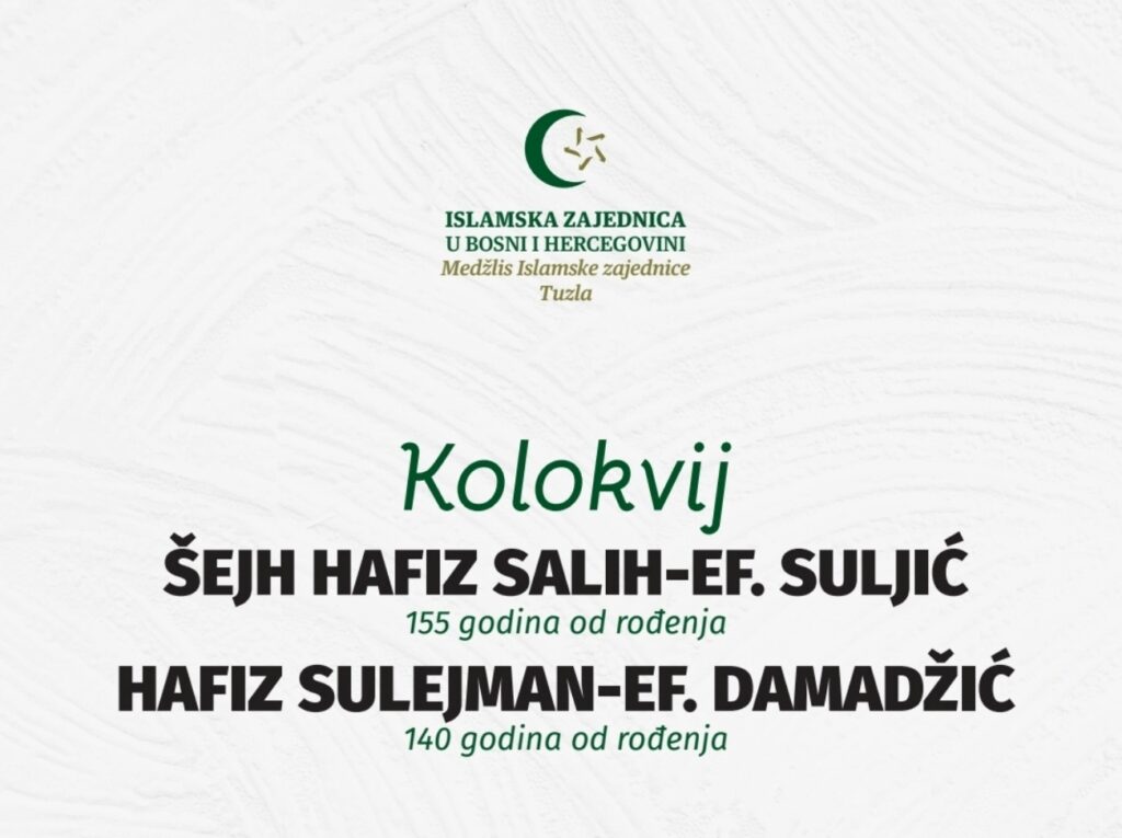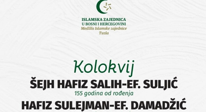 Medžlis Islamske zajednice Tuzla organizuje Kolokvij „Šejh hafiz Salih-ef. Suljić (155 godina od rođenja) i hafiz Sulejman-ef. Damadžić (140 godina…
