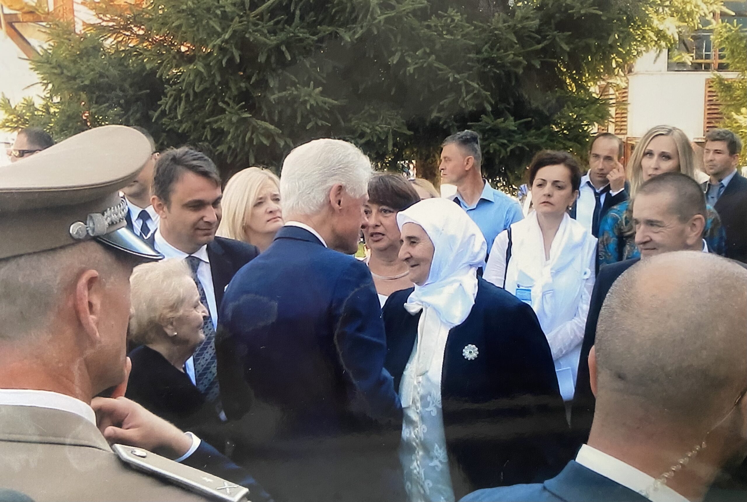 Nas je pozvao uvaženi reisul-ulema Mustafa Cerić i pitao ko će otvoriti mezarje, da li ja što sam predsjednica udruženja i vodila tu anketu ili on što je predsjednik Islamske zajednice. Mi smo njemu rekle, odnosno ja sam mu rekla da neću ni ja ni on, neka nam dođe Clinton, koji je tada bio predsjednik Amerike. Udruženje je napisalo pismo, poslalo preko američke ambasade Clintonu. Dobijam od njega odgovor za mjesec i po dana, kaže ne mogu doći 11, dolazim 20. septembra. Zamislite, dovesti jednog predsjednika Amerike da otvori mezarje i da dođe na mjesto zločina i genocida. I kad je on došao, tu su došli svi mediji: “CNN”, “BBC”, “Reuters”, “Spiegel”… Mi smo tada odmah počele da govorimo da smo preživjele genocid, nismo htjele da kažemo ni zločin, ni ubijanje, nego genocid, genocid, genocid. I sva pravila koja je Haški tribunal, na osnovu čega je donosio presude; i jeste se desio genocid, jer su pobili, protjerali, opljačkali, ponizili, sve živo sa naših prostora očistili. To je vrsta genocida. I to smo mi preživjele i doživjele.