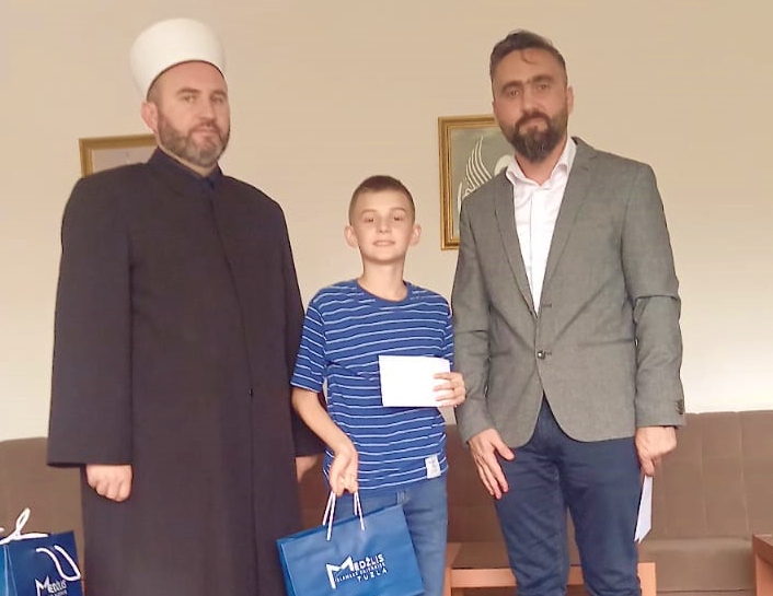 Glavni imam Huskanović je čestitao muallimu i polaznicima Škole na ostvarenim uspjesima i uručio im prigodne hedije i novčane nagrade.
